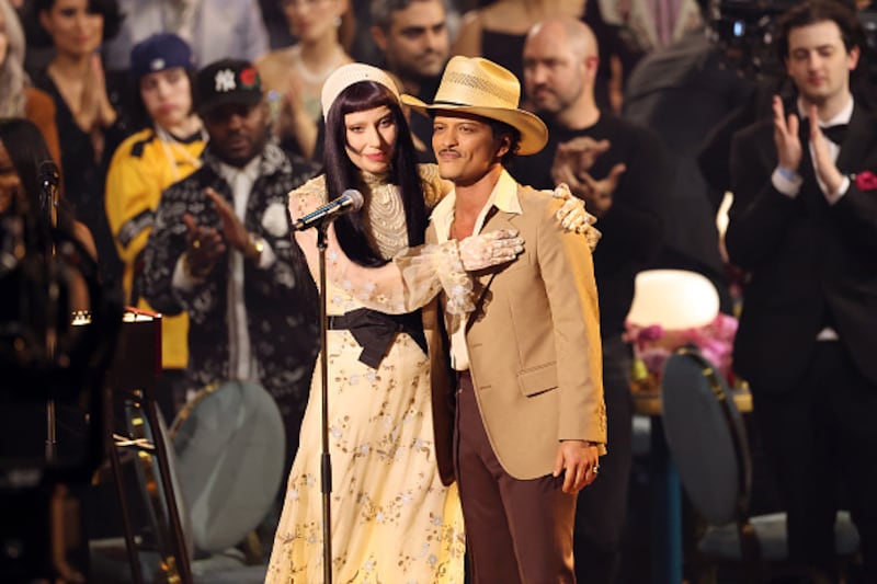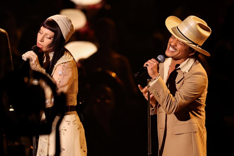 67th GRAMMY Awards - Show LOS ANGELES, CALIFORNIA - FEBRUARY 02: (FOR EDITORIAL USE ONLY) (L-R) Lady Gaga and Bruno Mars perform onstage during the 67th GRAMMY Awards at Crypto.com Arena on February 02, 2025 in Los Angeles, California. (Photo by Amy Sussman/Getty Images) (Amy Sussman/Getty Images)