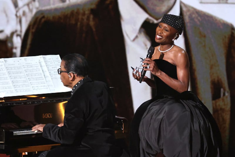 67th GRAMMY Awards - Show LOS ANGELES, CALIFORNIA - FEBRUARY 02: (FOR EDITORIAL USE ONLY) Cynthia Ervio and Herbie Hancock perform onstage during the 67th GRAMMY Awards at Crypto.com Arena on February 02, 2025 in Los Angeles, California. (Photo by Amy Sussman/Getty Images) (Amy Sussman/Getty Images)