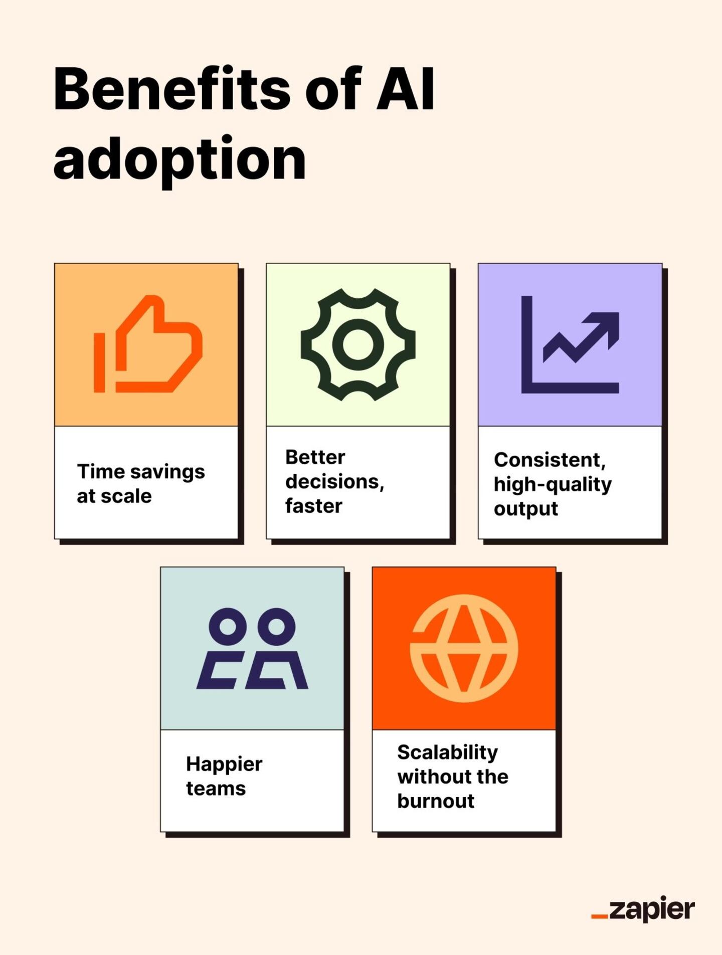That's the paradox. AI is both helpful and hard, useful and overwhelming. This guide by Zapier can help you walk that line: how to adopt AI in a way that's thoughtful, strategic, and maybe even fun—without losing your mind (or your team's trust) along the way.