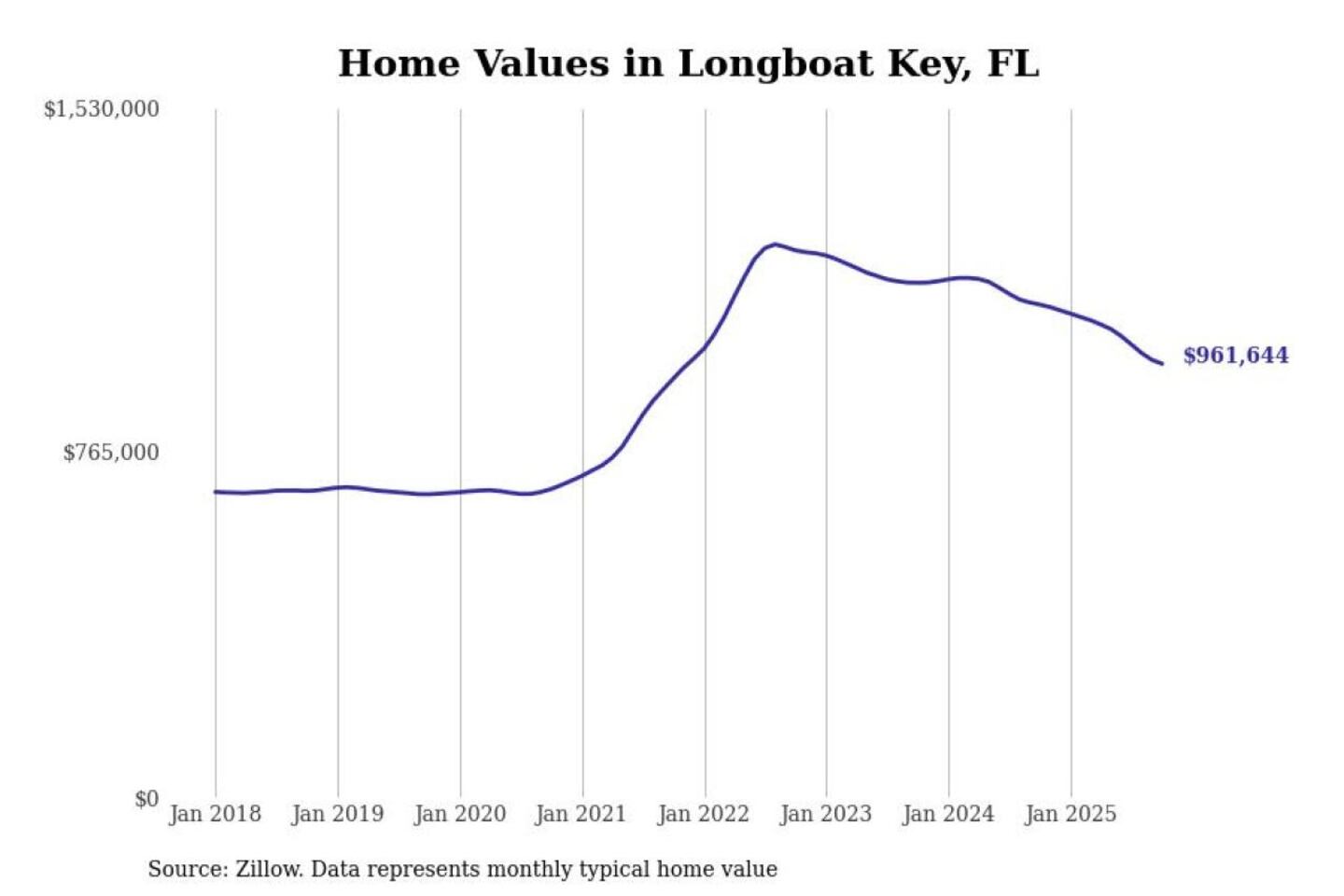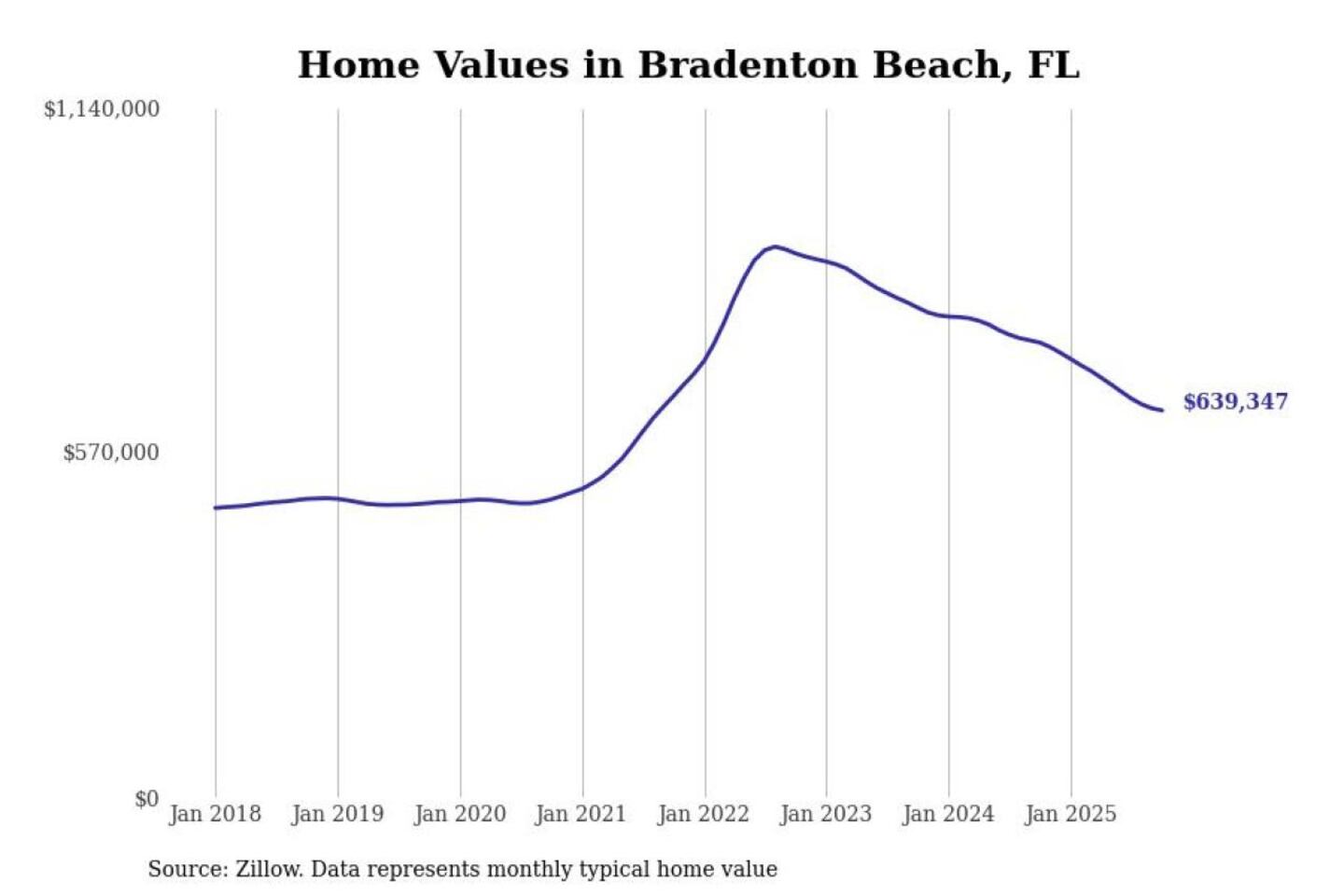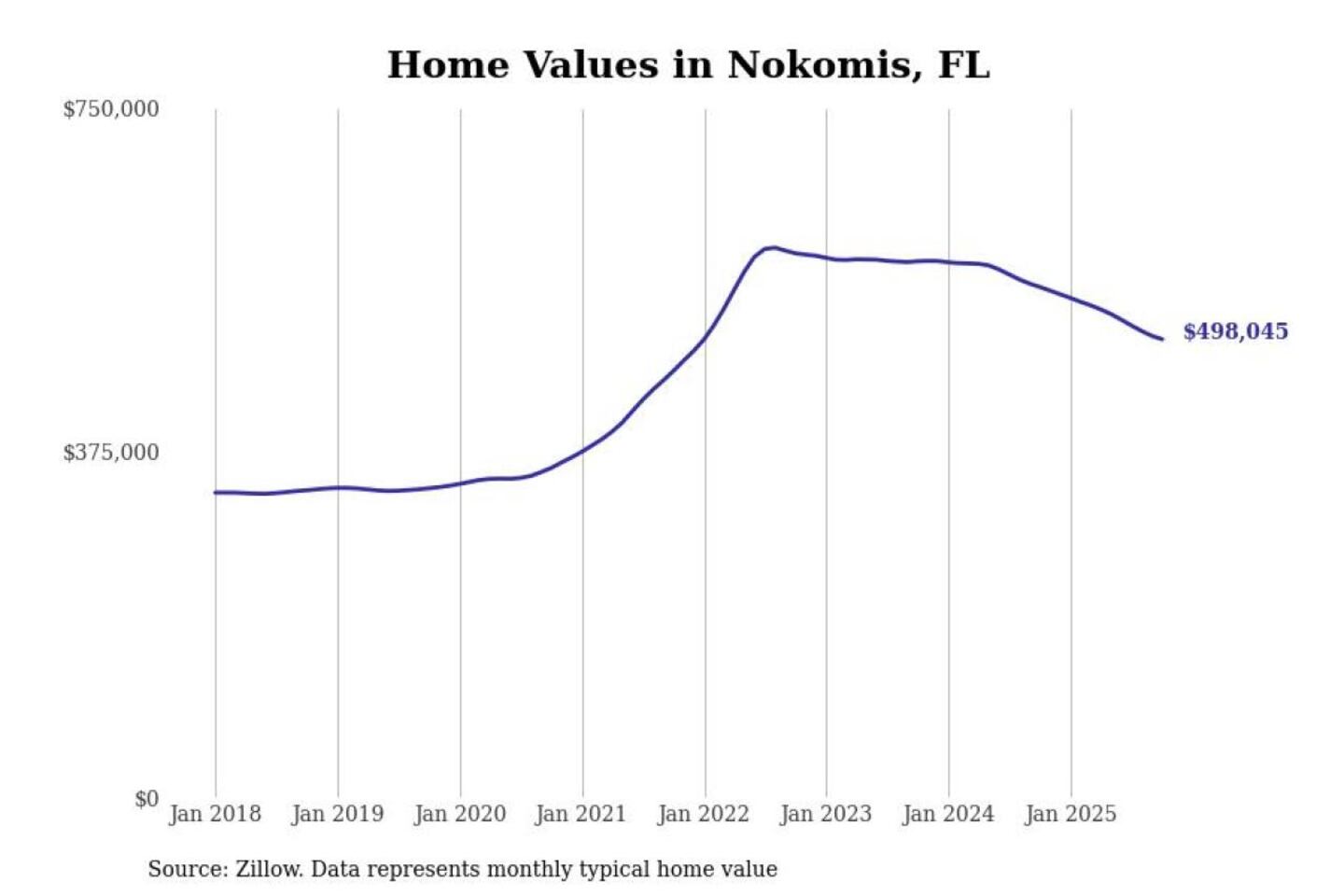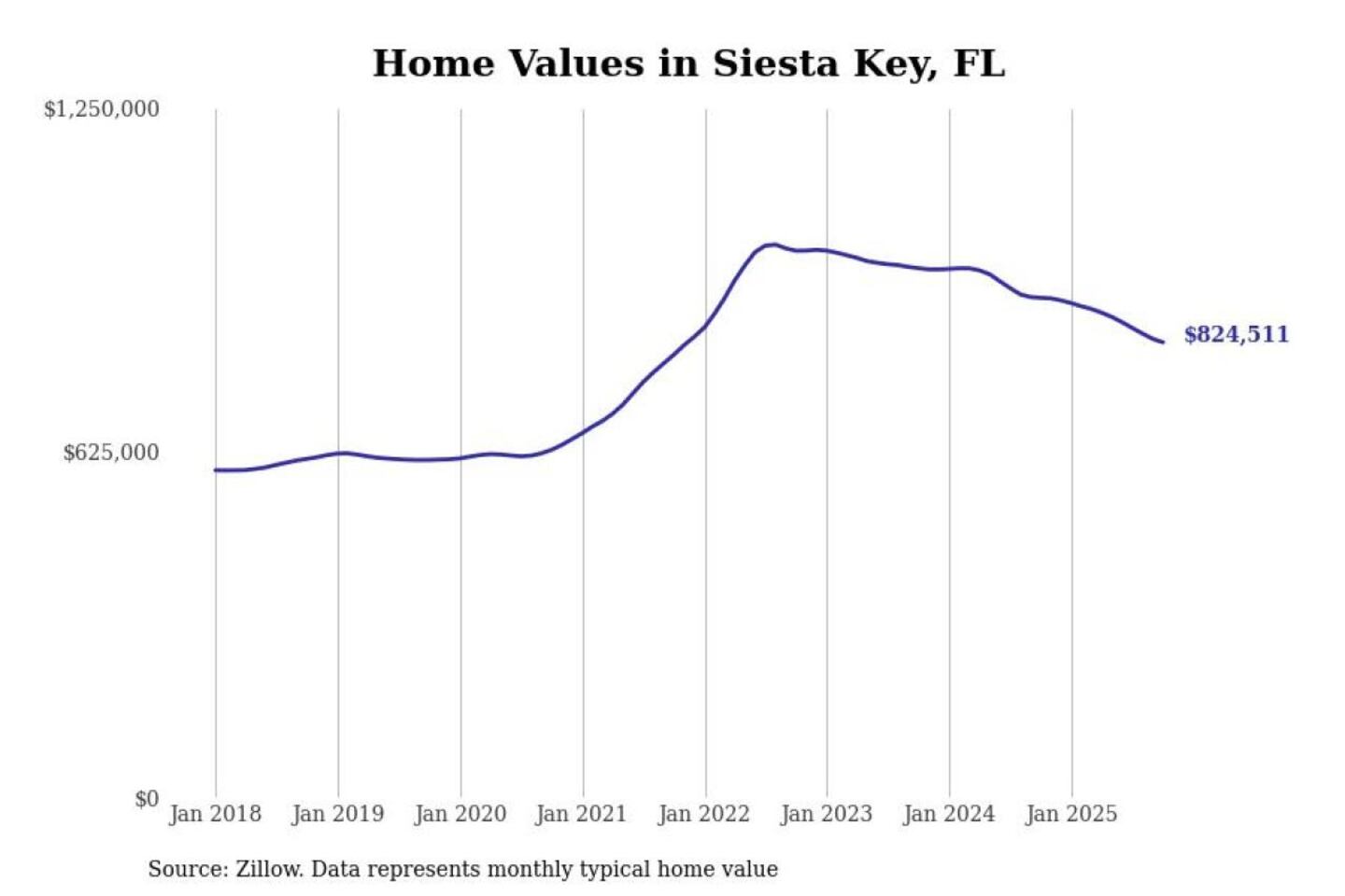 Stacker compiled a list of cities with the most expensive homes in the North Port-Sarasota-Bradenton, FL metro area using data from Zillow. Charts show the monthly typical home value since January 2018.