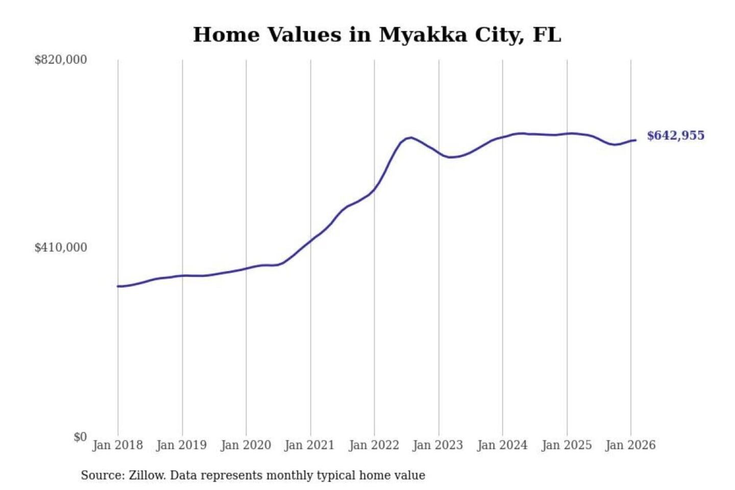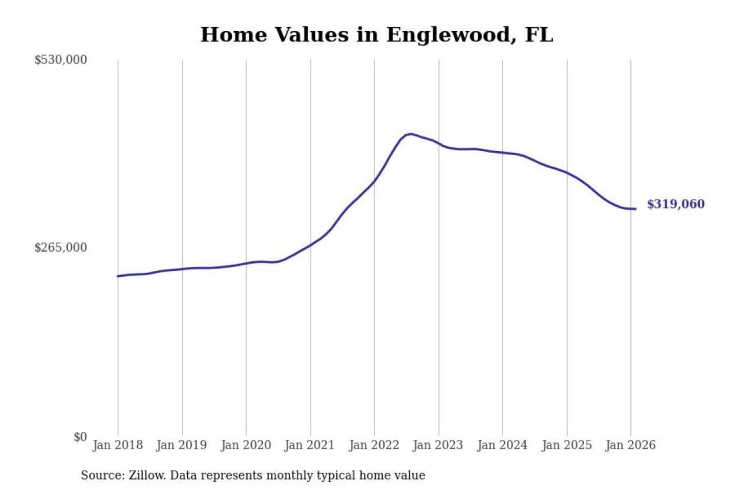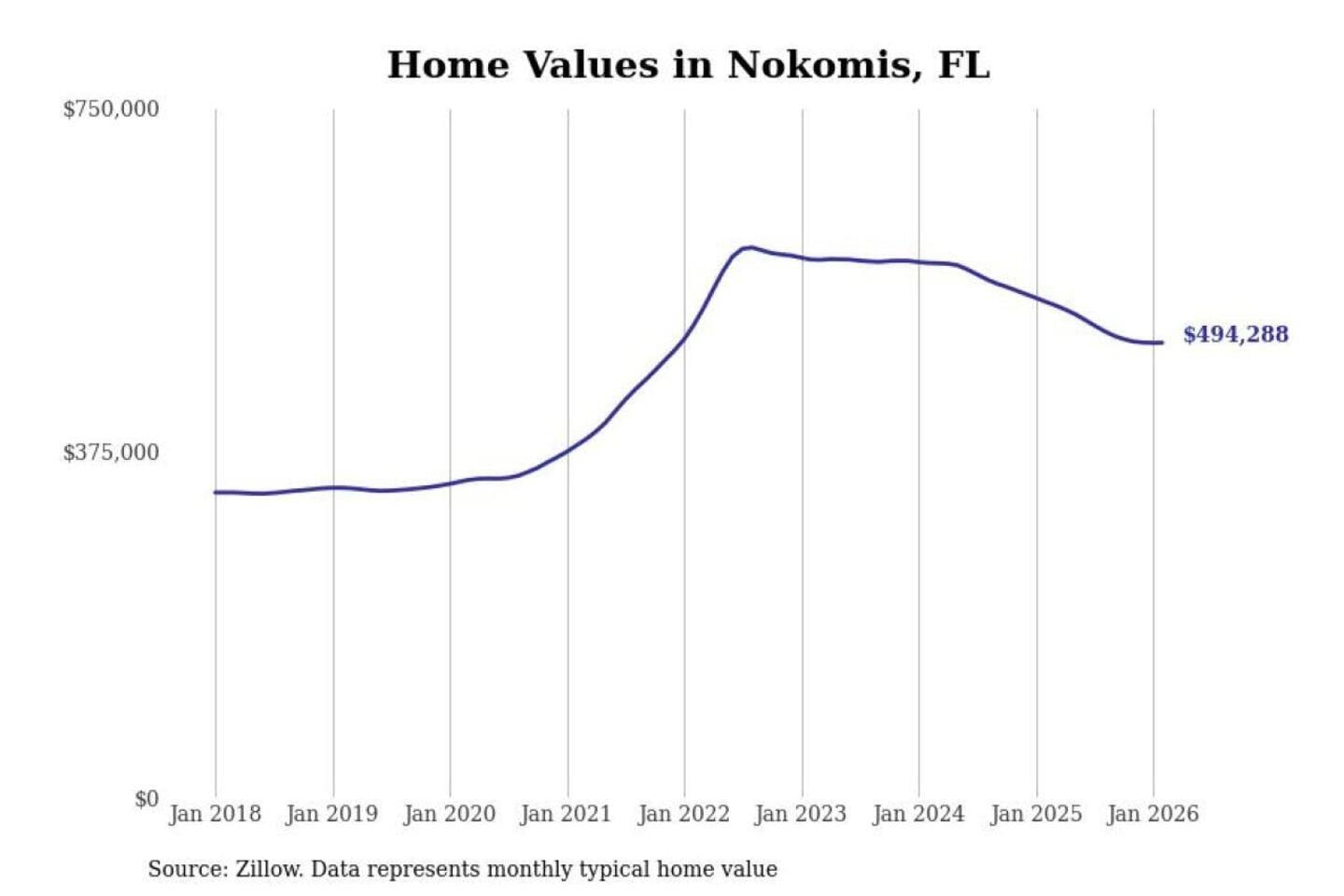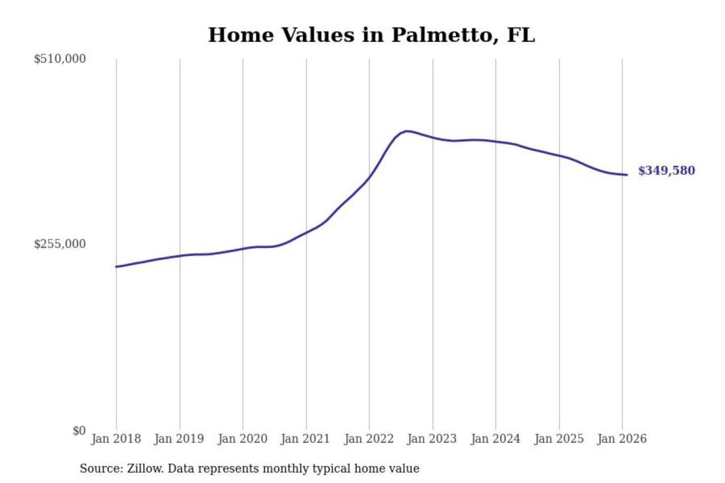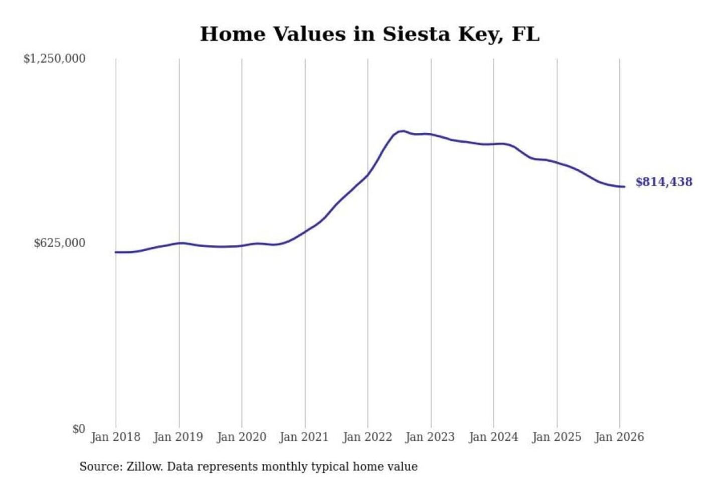 Stacker compiled a list of cities with the most expensive homes in the North Port-Sarasota-Bradenton, FL metro area using data from Zillow. Charts show the monthly typical home value since January 2018.