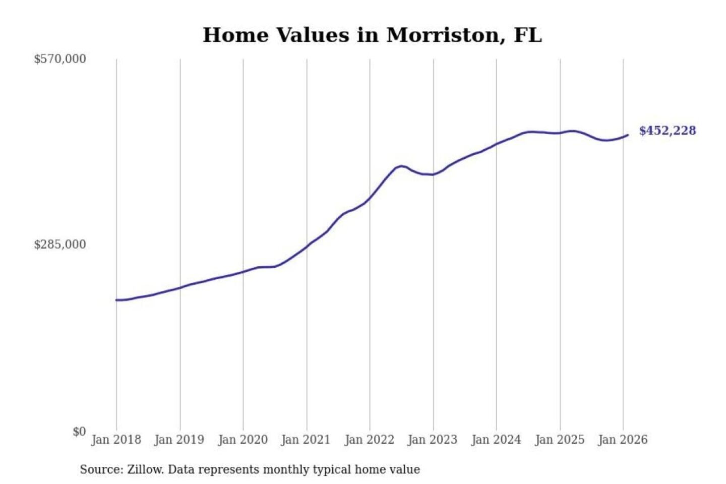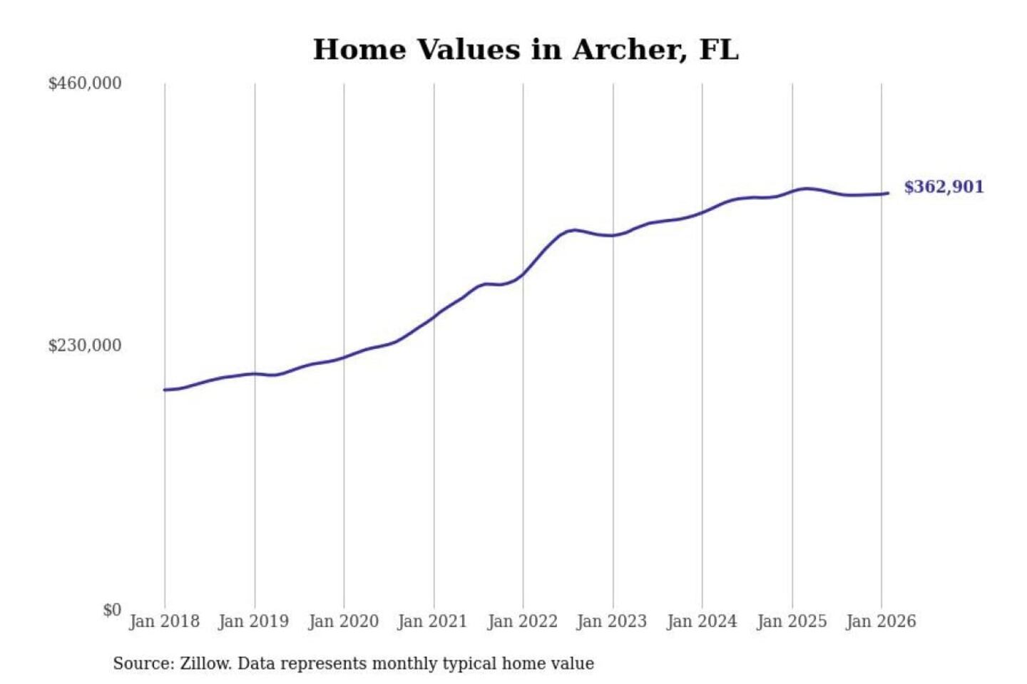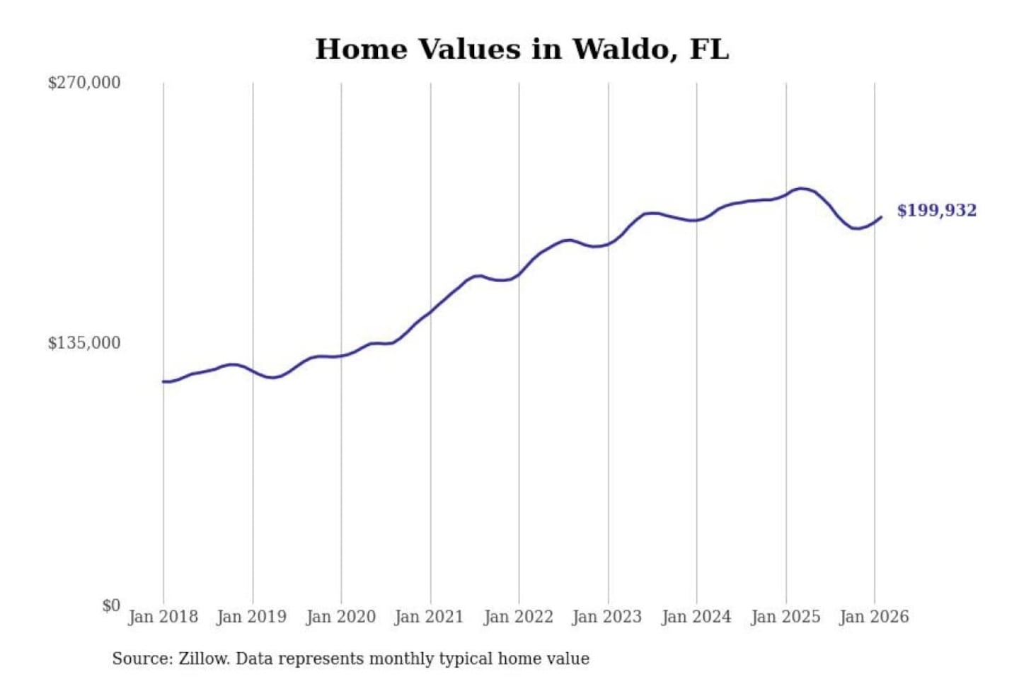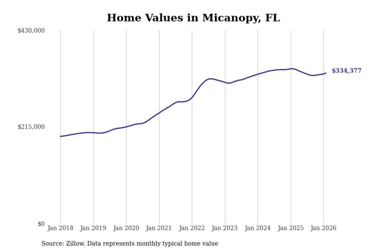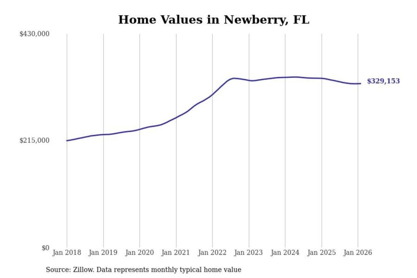 Stacker compiled a list of cities with the most expensive homes in the Gainesville, FL metro area using data from Zillow. Charts show the monthly typical home value since January 2018.
