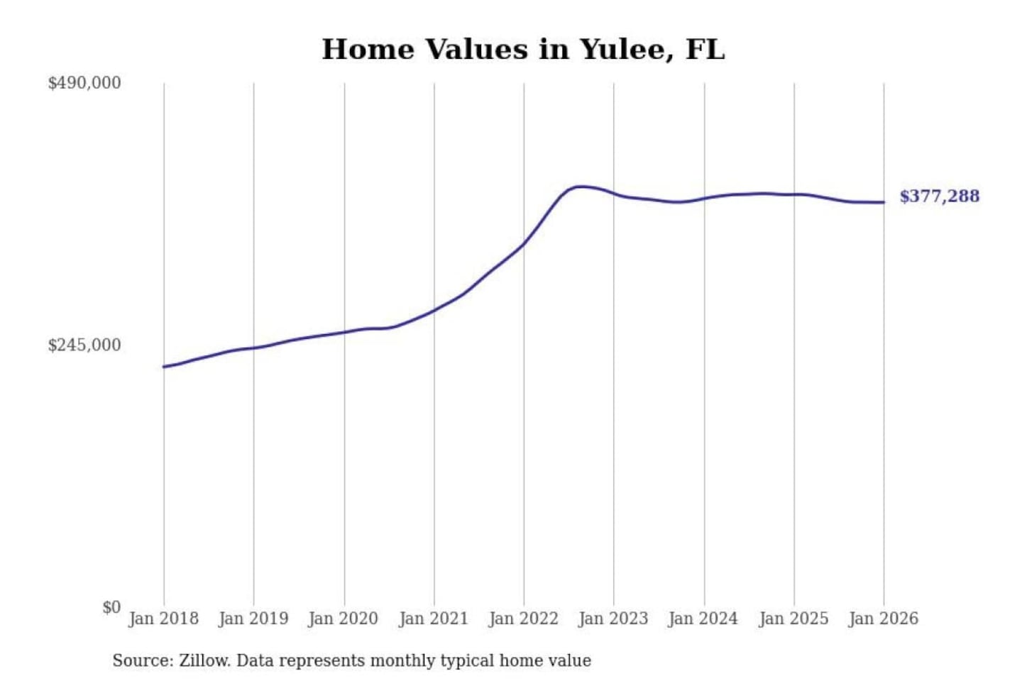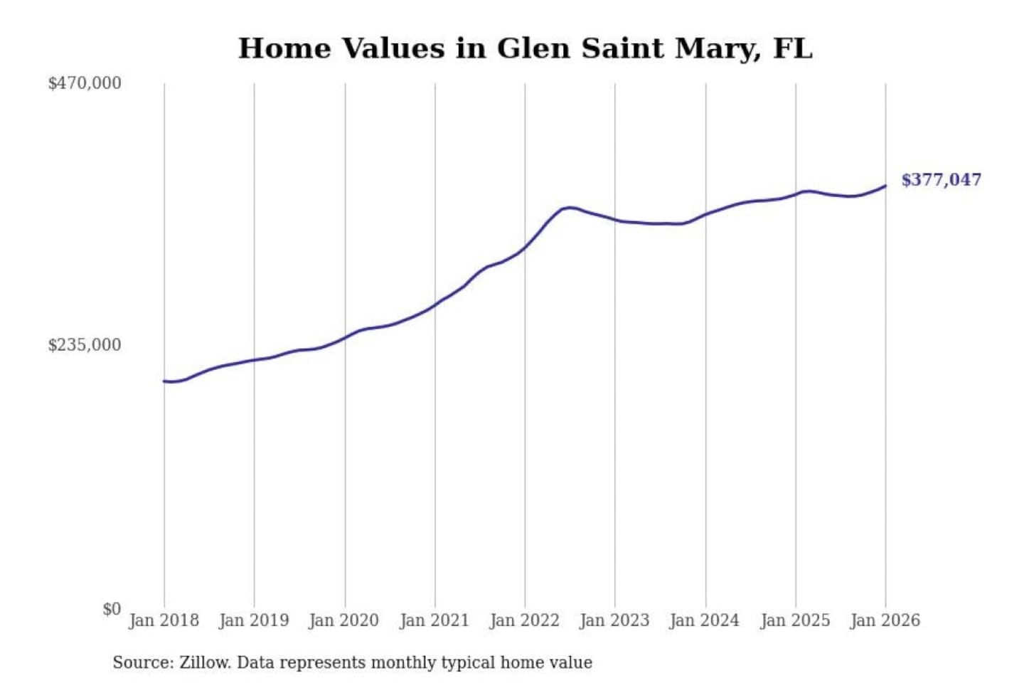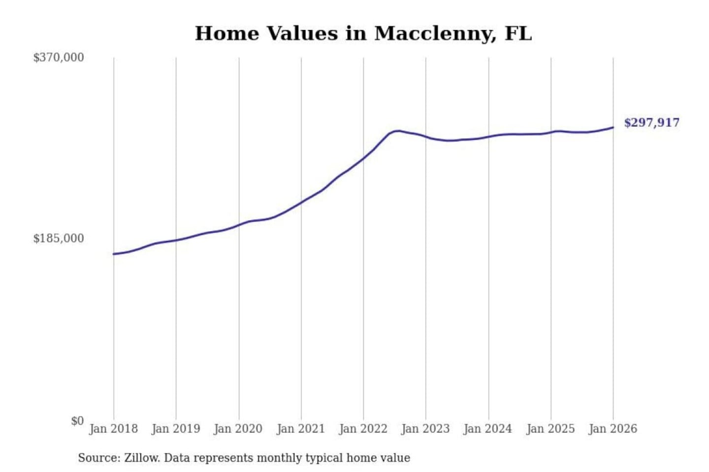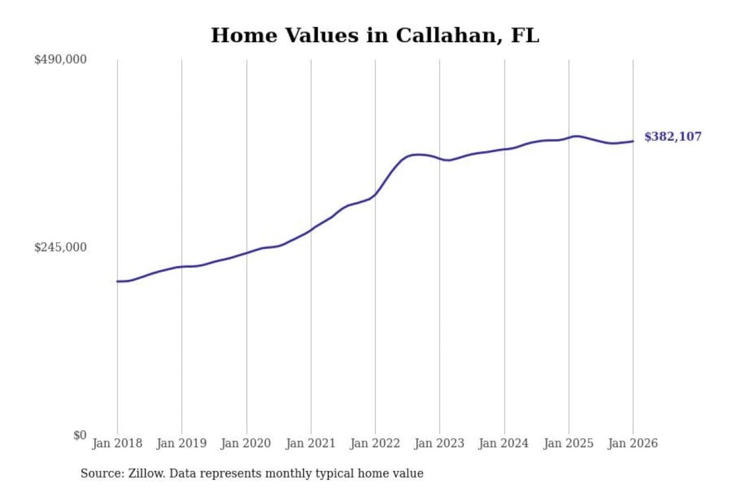 Stacker compiled a list of cities with the most expensive homes in the Jacksonville, FL metro area using data from Zillow. Charts show the monthly typical home value since January 2018.