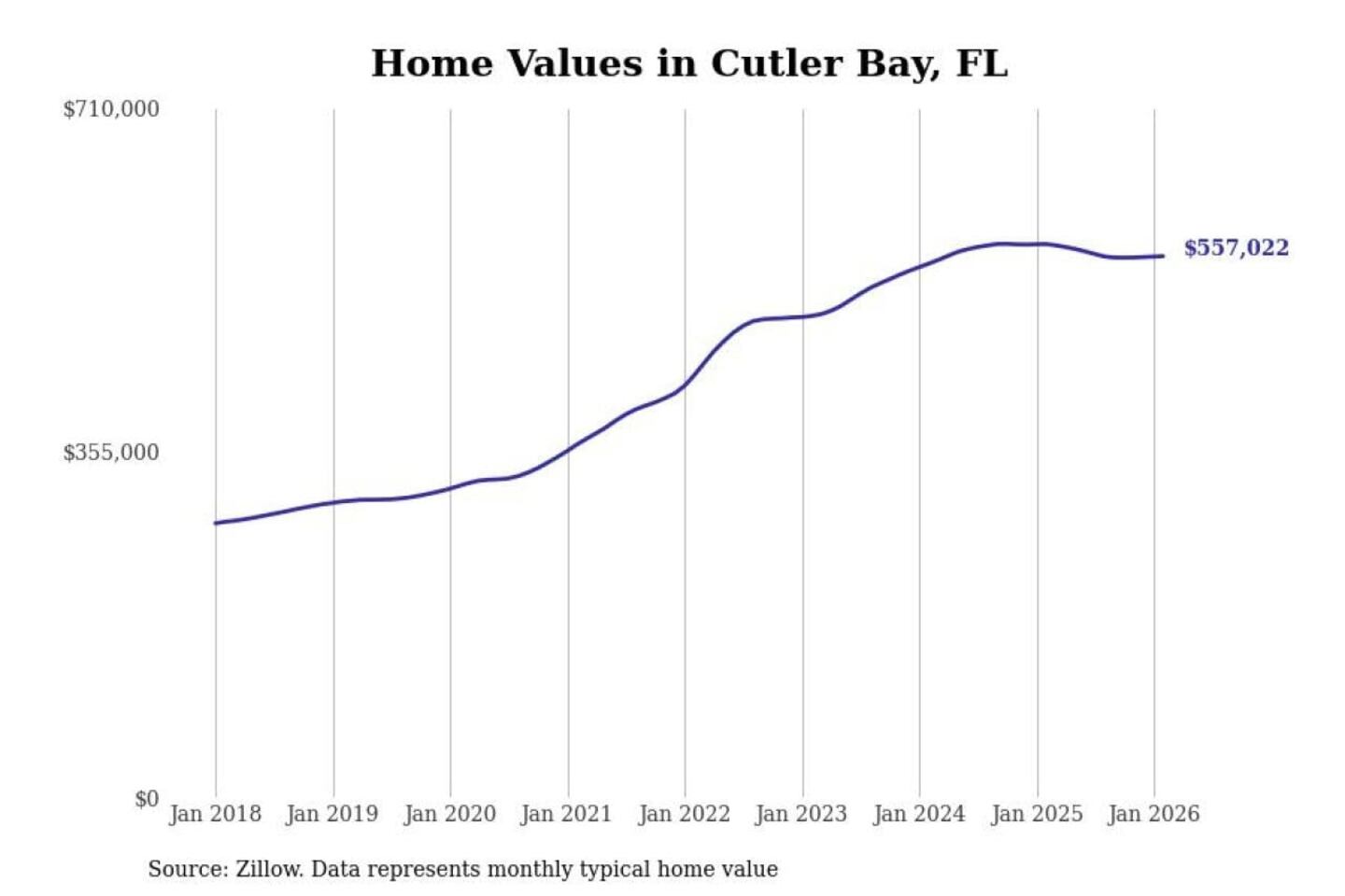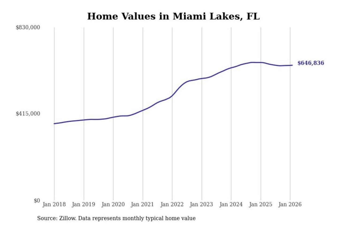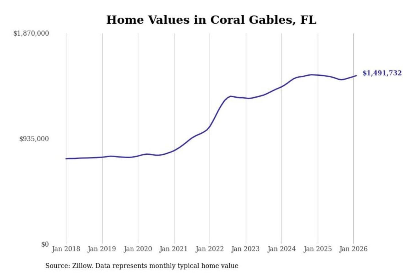 Stacker compiled a list of cities with the most expensive homes in the Miami-Fort Lauderdale-Pompano Beach, FL metro area using data from Zillow. Charts show the monthly typical home value since January 2018.