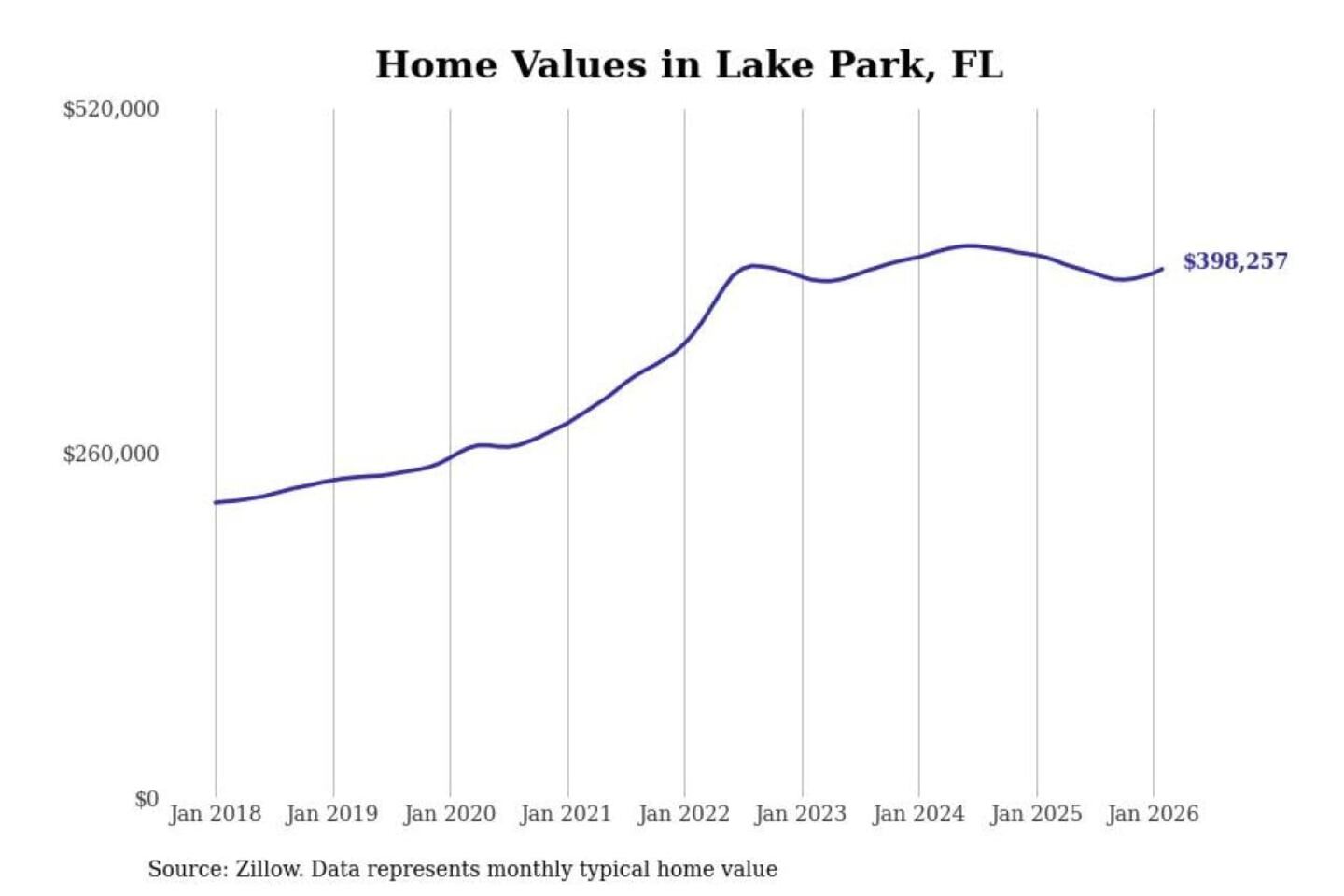 - 5-year price change: +$218,324 (+51.1%)