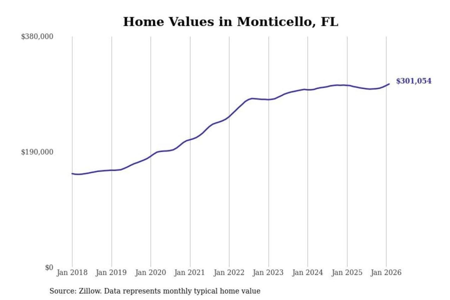 Stacker compiled a list of cities with the most expensive homes in the Tallahassee, FL metro area using data from Zillow. Charts show the monthly typical home value since January 2018.