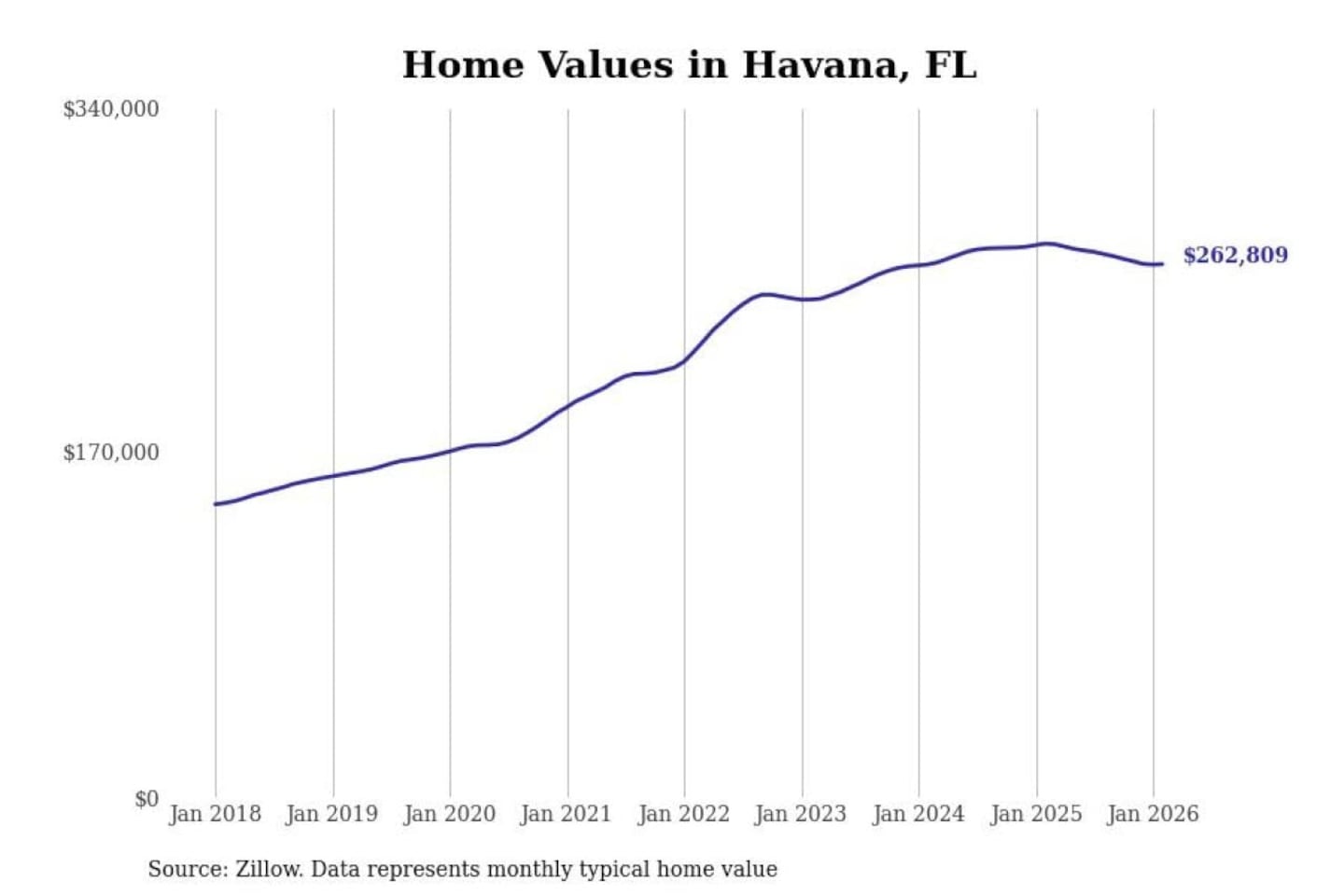 Cities with the fastest-growing home prices in the Tallahassee metro area