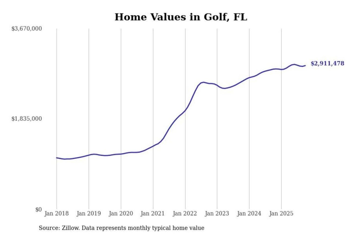 Stacker compiled a list of cities with the most expensive homes in Florida using data from Zillow. Cities are ranked by the Zillow Home Values Index for all homes as of October 2025. The charts in this story were created automatically using Matplotlib.