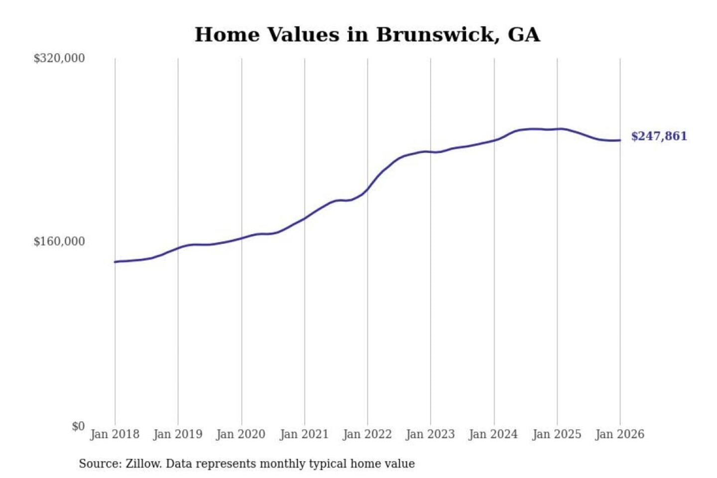 Stacker compiled a list of cities with the most expensive homes in the Brunswick metro area using data from Zillow. Charts show the monthly typical home value since January 2018. All 9 cities and towns with data available were included in the list.
