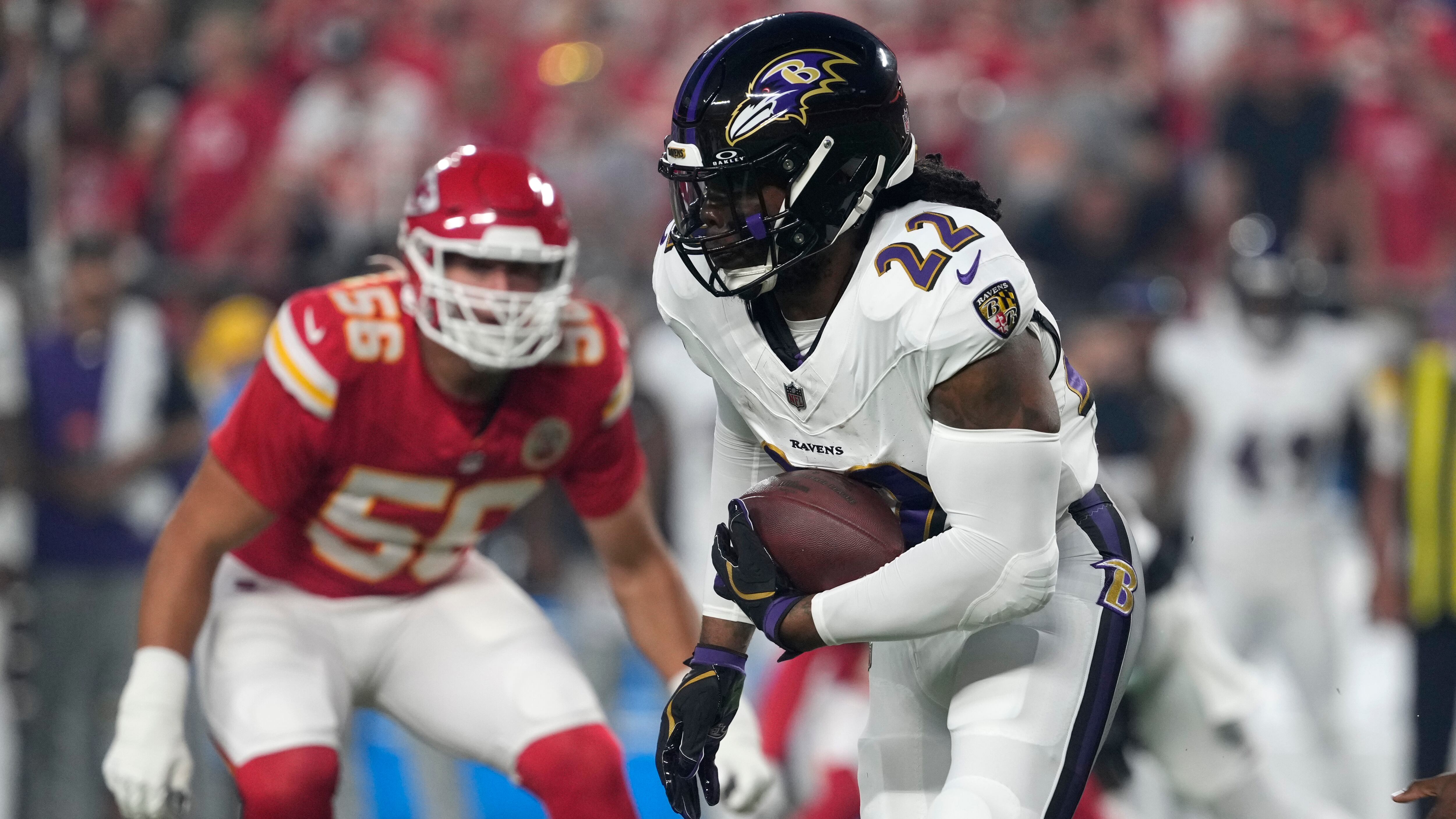 The two-time rushing champ joined the Ravens this offseason after eight seasons with the Tennessee Titans. He kicked off his Ravens career by scoring the first touchdown of the NFL season.