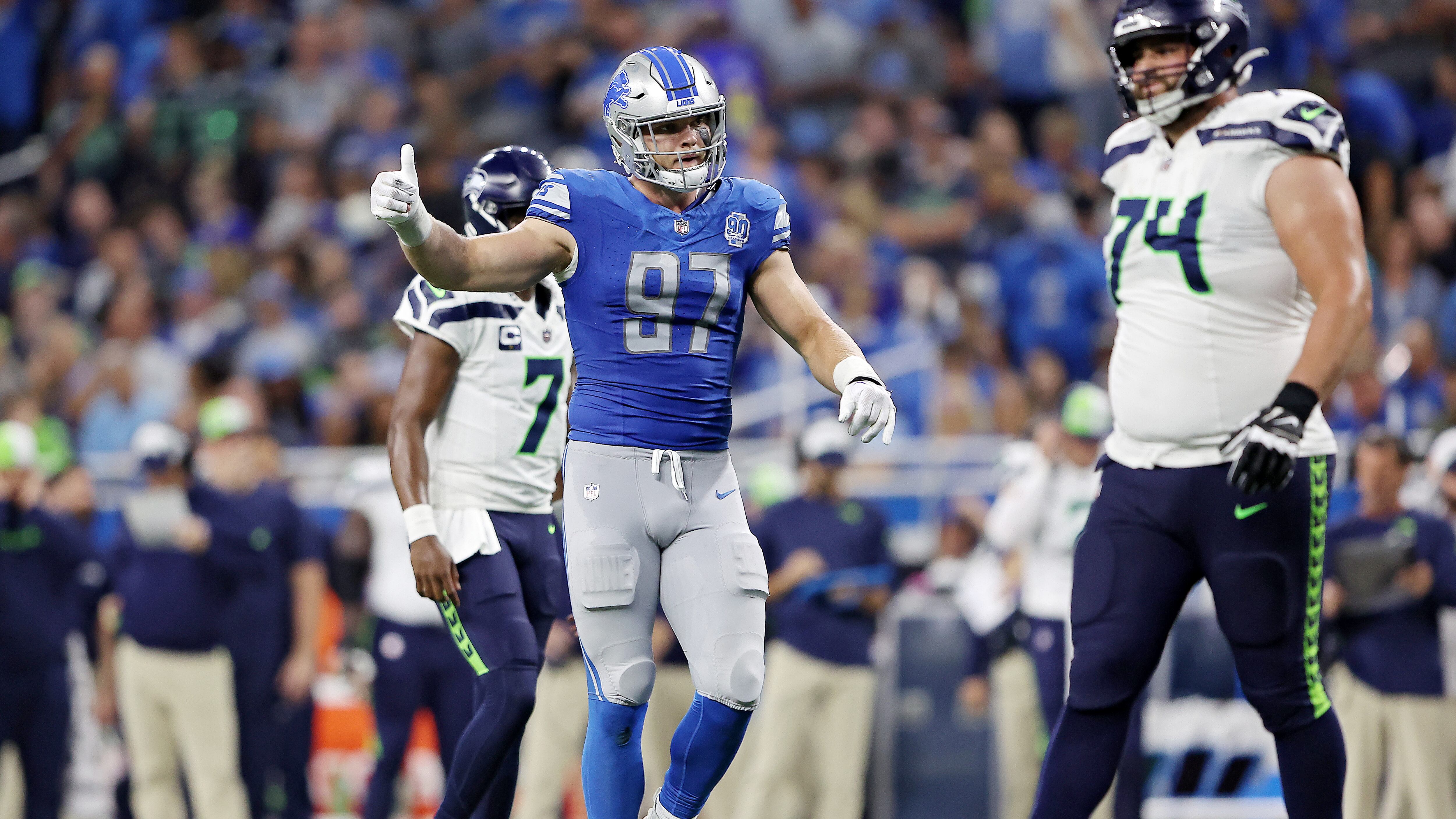 Aidan Hutchinson was asked about what seemed like a blatant no-call during Geno Smith's game-winning TD pass to Tyler Lockett in OT.