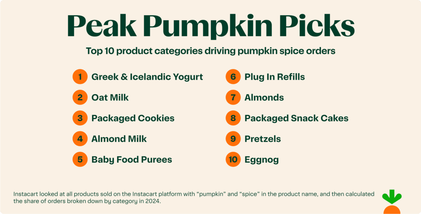 If it feels like pumpkin spice season creeps up earlier every year, you're not imagining it. In 2024, the seasonal peak for orders containing pumpkin spice items occurred on September 17, a full 10 days earlier than in 2023. But this early surge came with a faster cooldown, with demand taking a dip by the end of the month. There's also a reliable second spike in late November, likely driven by Thanksgiving's fondness for all things squash and spice.