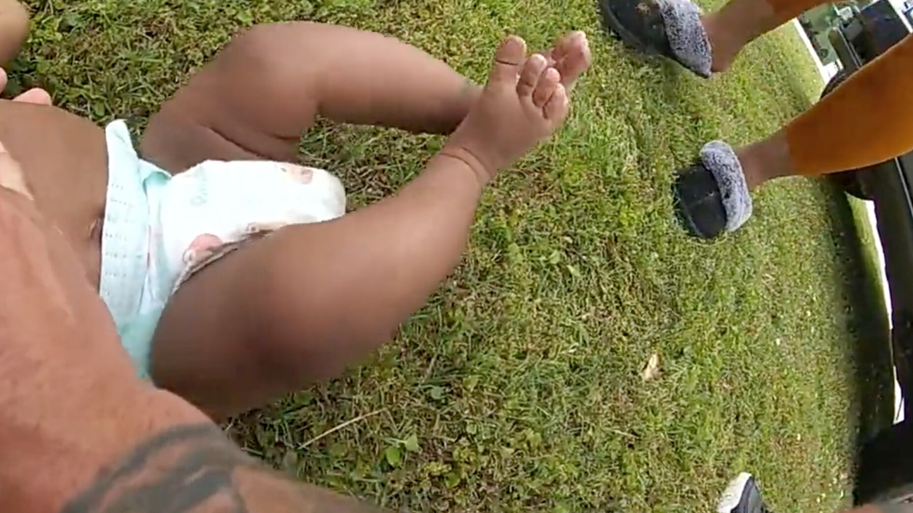 A woman holding a baby told Oden that the baby was not breathing.