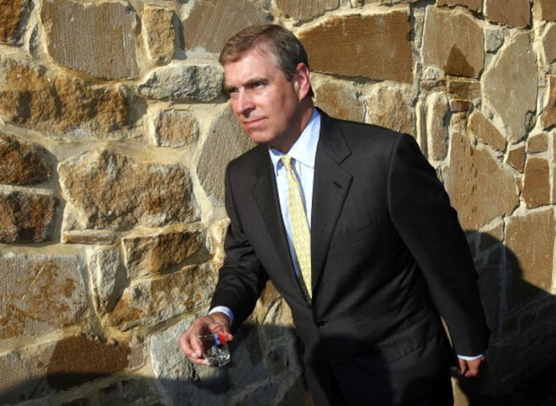 Through the years HRH Prince Andrew, Duke of York, reacts at the presentation of a hydrogen gas station after he arrived at the airport on April 5, 2005 in Munich, Germany. Prince Andrew arrived for a one day visit of Germany. (Photo by Jan Pitman/Getty Images) (Jan Pitman/Getty Images)